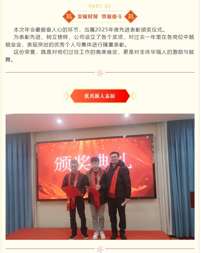 新的一年,全体华瑞人将携手同心、砥砺前行,以实干奔赴高质量发展的新征程,共同书写企业发展的崭新篇章!
